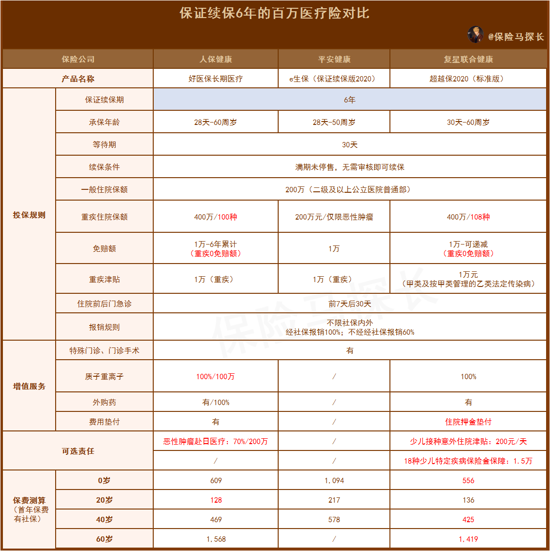 二、全面测评:6年期、20年期的医疗险哪个更好?