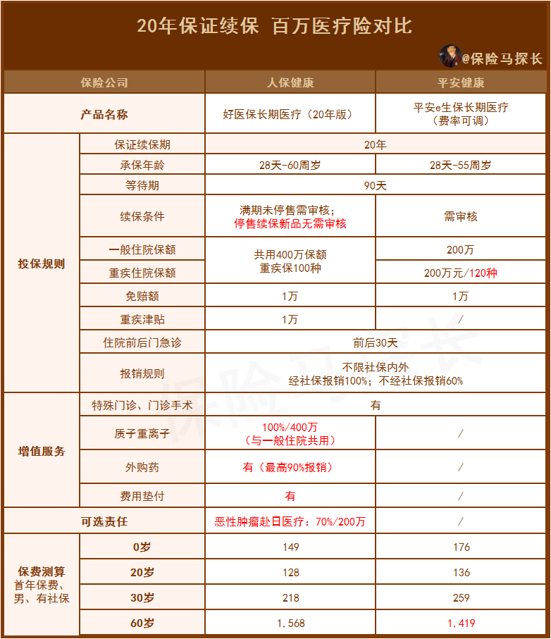 在好医保出了20年之后,续保时间长这个优势也没有了。只在重疾保障病种、年纪大的朋友购买的费率上略占优势。