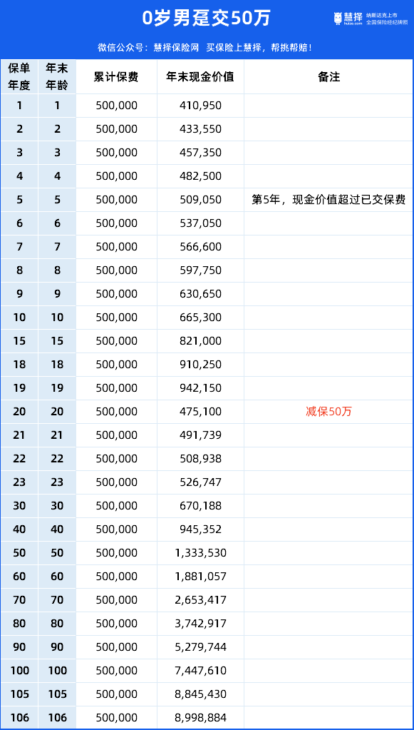可以看到,小马5岁时,保单现金价值超过已交保费,