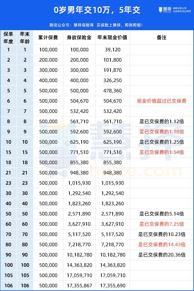 选择趸交,保单年度第5年,现金价值>已交保费,