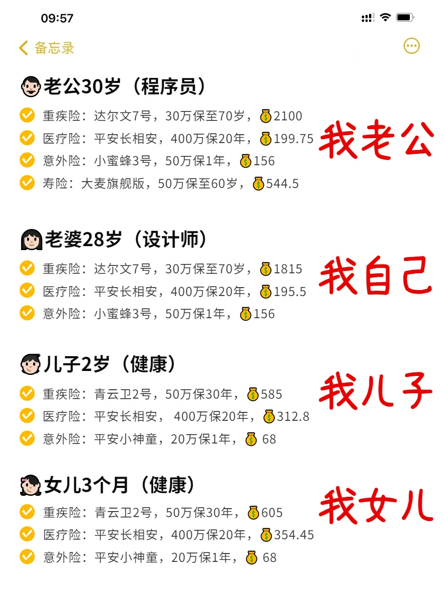 最近有位宝妈找到大白咨询一家四口的保险,说她之前给全家买的保险 2 万多,压力实在太大了