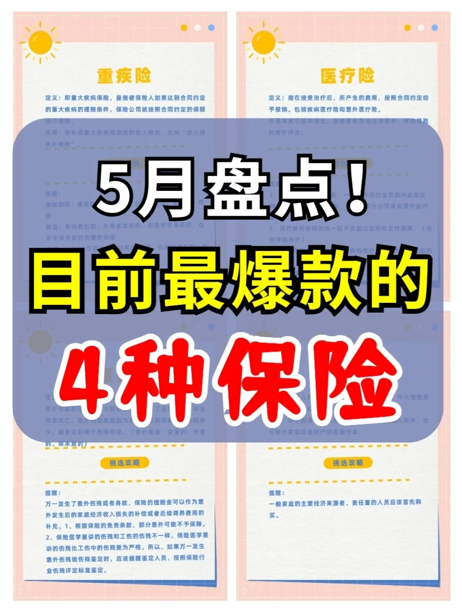 5月保险最全盘点!最火爆的4种保险!