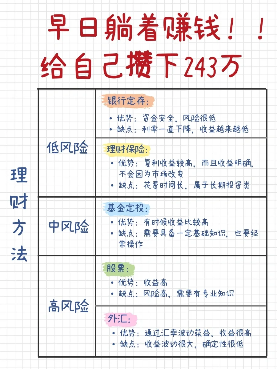 1.强制储蓄:每年强制定期存,积少成多
