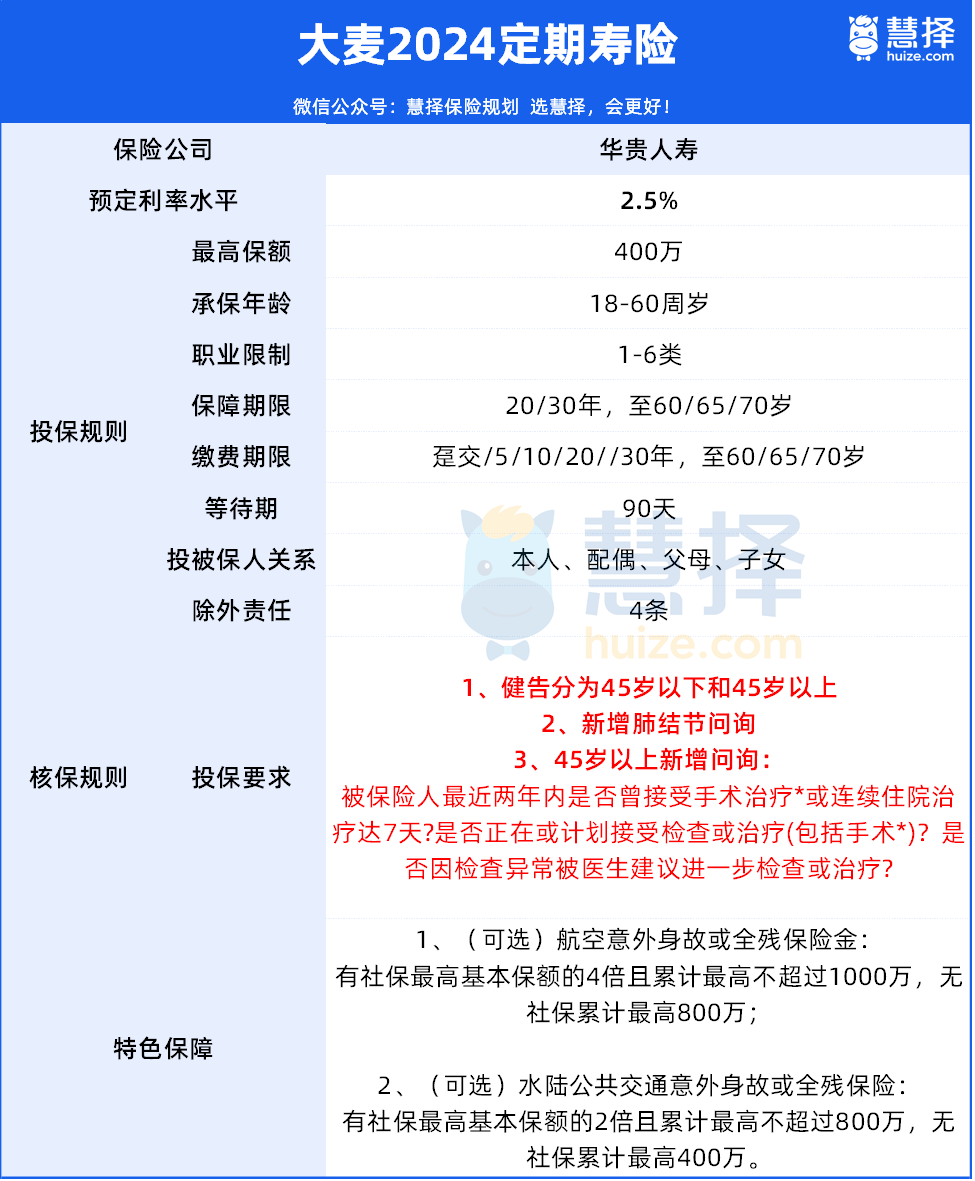 二、华贵大麦2024定期寿险值不值得买?