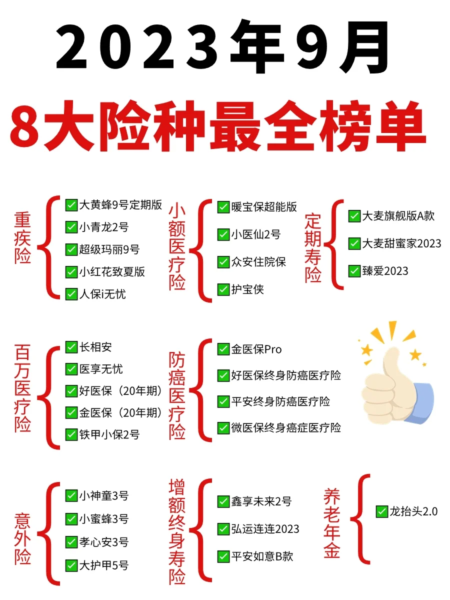 以下是大白帮大家整理的9月保险榜单(包括了医疗、重疾、意外、定寿和增额和年金)