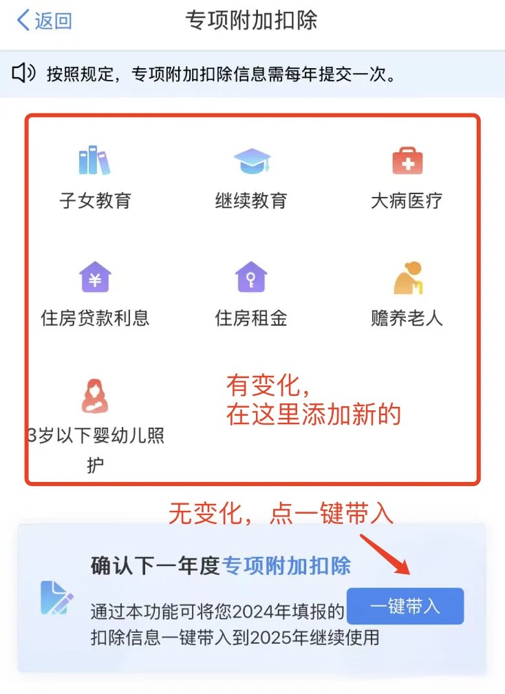 如果扣除项目,没有变化,直接“一键带入”;