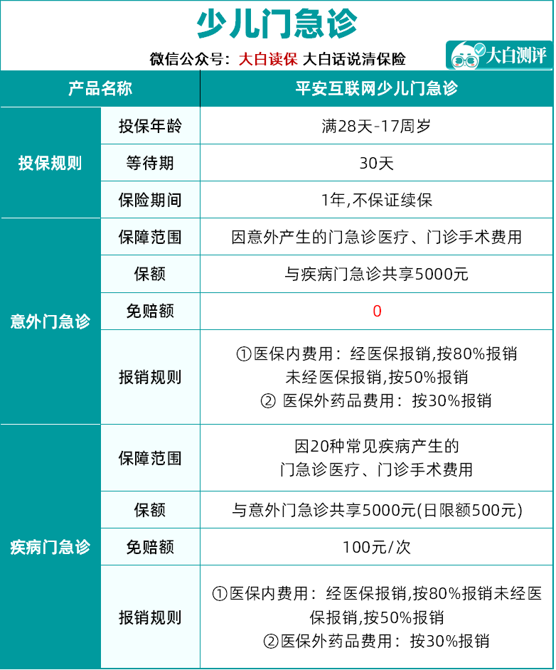 意外门急诊0免赔,指定疾病门急诊免赔额100元/次。