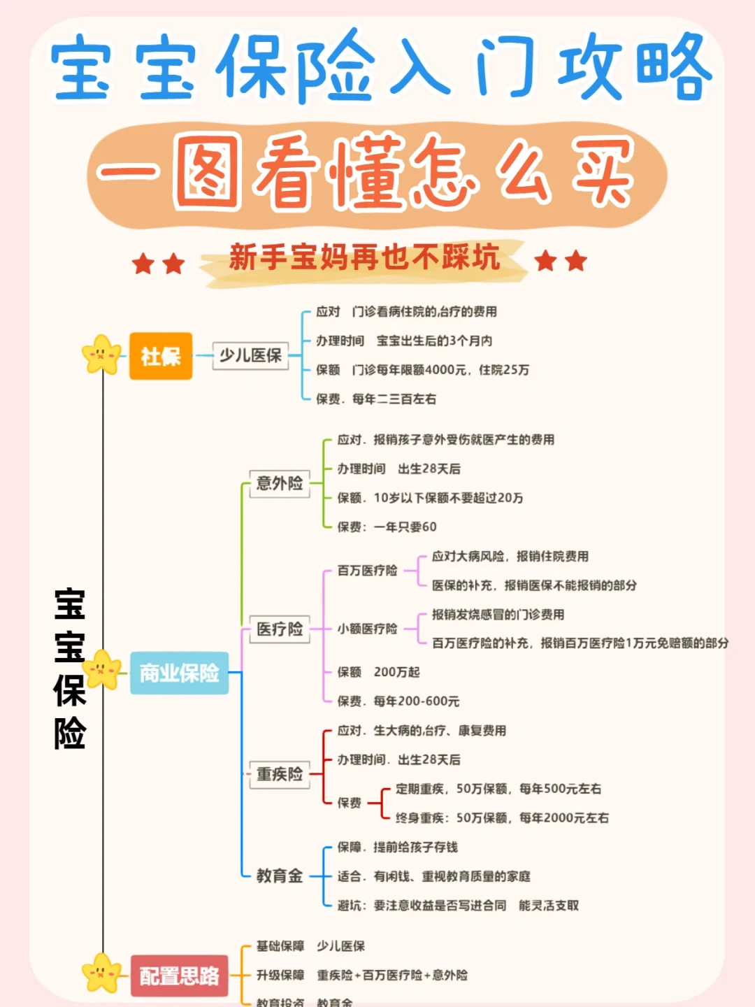 保险的本质,是花小转移大风险,如果你没弄懂就买了,肯定要踩坑。今天大白用一张图带你看懂宝宝保险怎么买,新手小白必看的保险入门攻略,赶快收藏学起来。