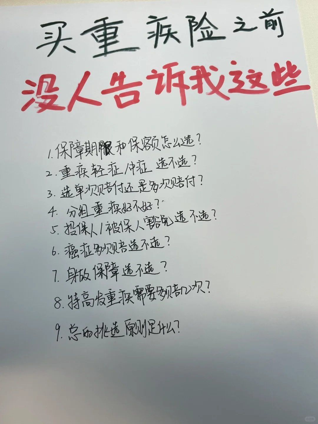 结合大白多年在行业里的摸爬滚打,给大家总结出来挑选重疾险不踩坑的技巧,记得收藏好,买之前拿出来看看。