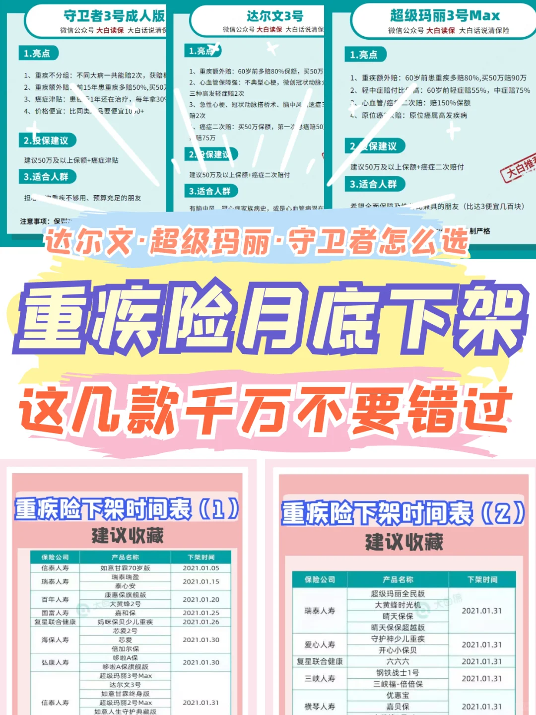 最好的一批重疾险快要没了真不是开玩笑,44款热门重疾险下架时间表,我给大家整理好了,觉得有用点赞收藏起来,自己想要买哪一款产品的,一一对应,特别注意把握好时间哈