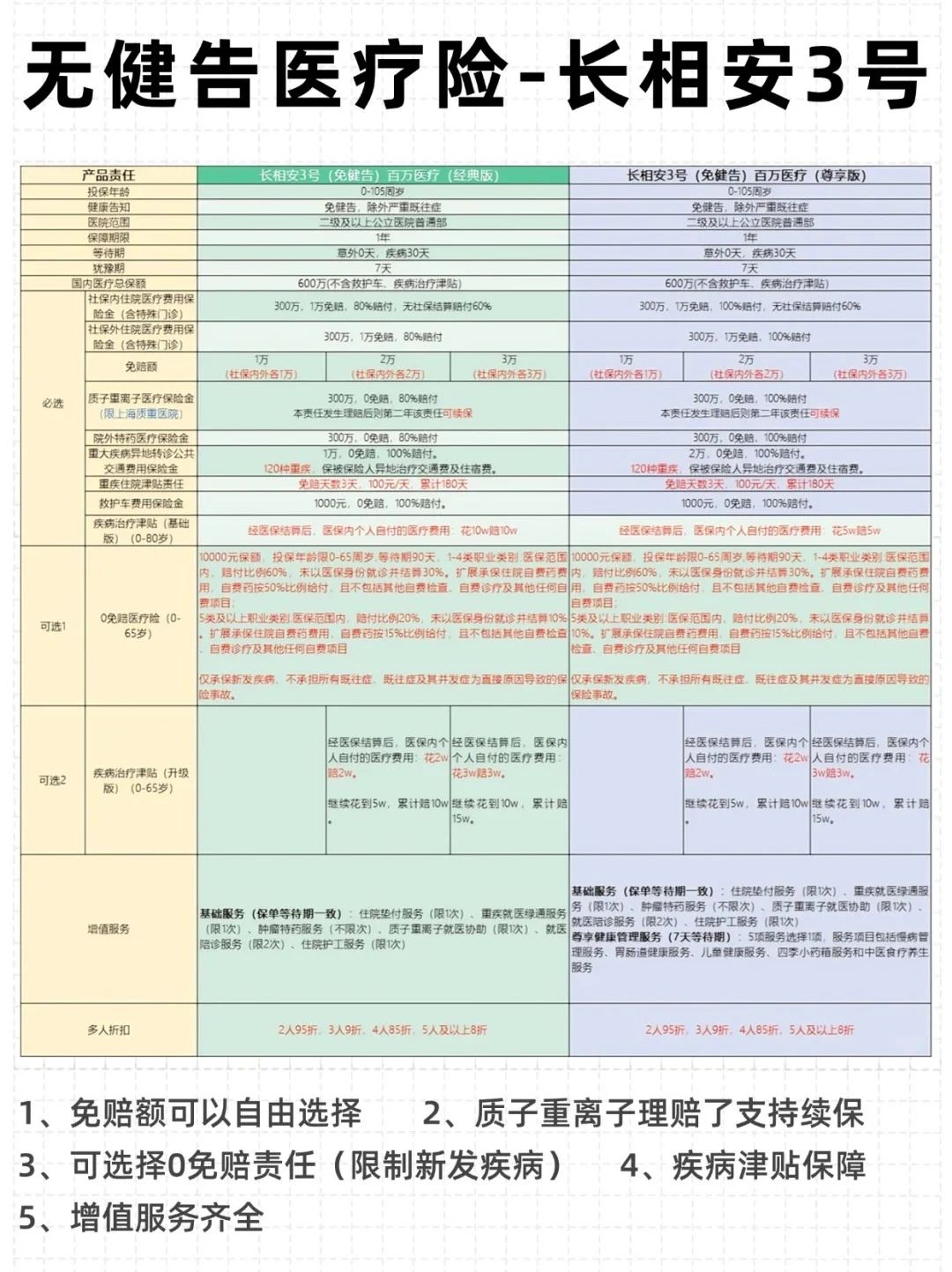除了保持和众民保一样的医保内外各1万免赔额之外,新品还新增了2万和3万免赔额的版本,保费更低