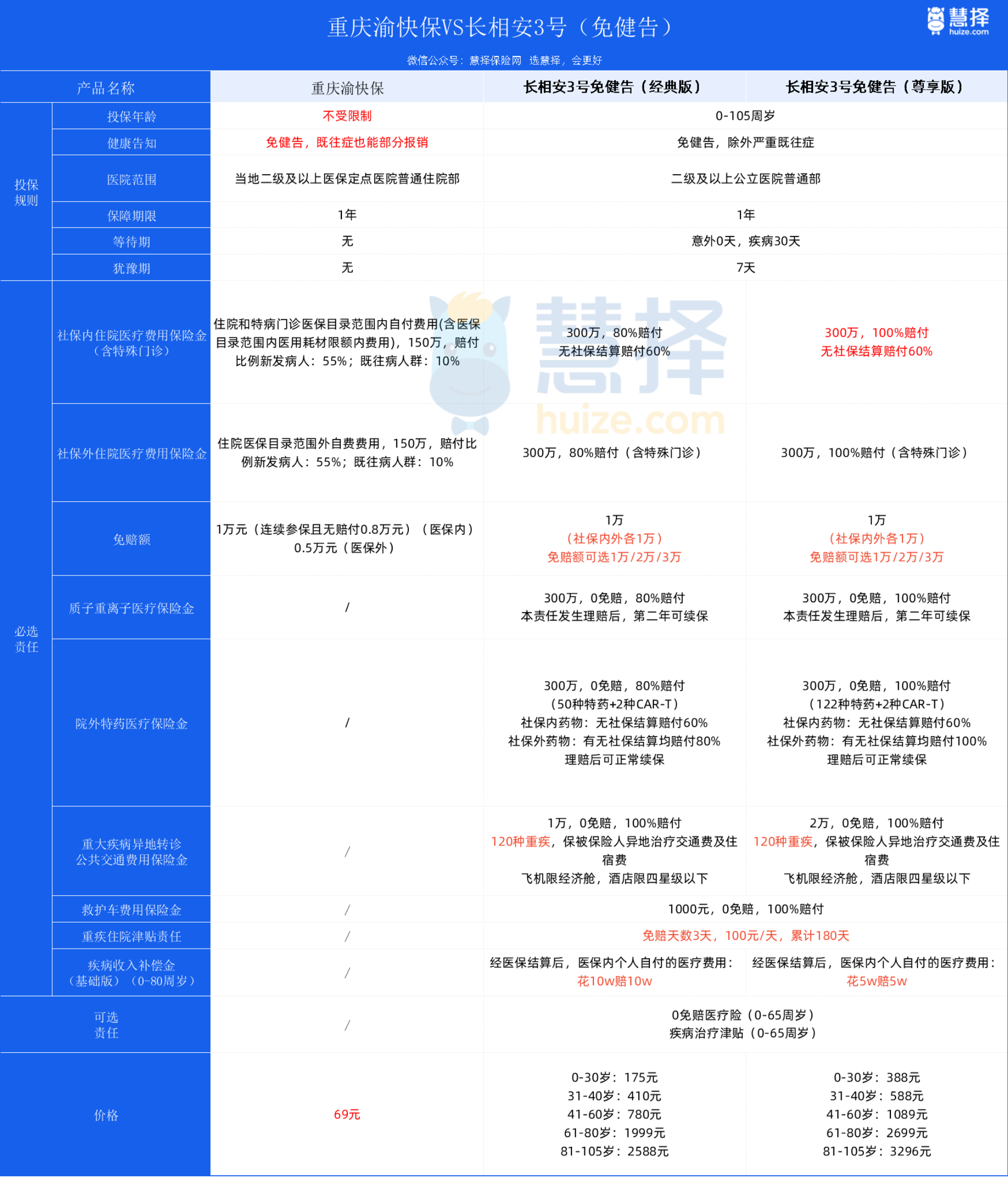 1、基础保障PK,长相安3号(免健告)胜。