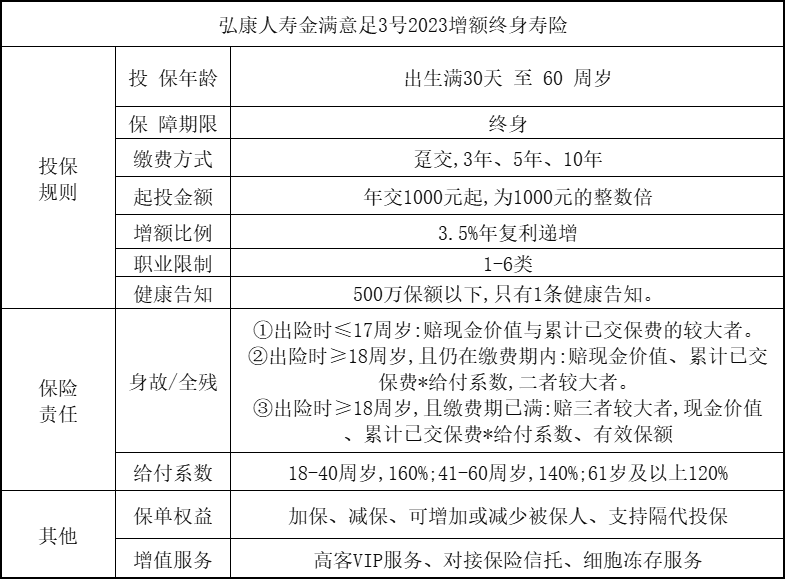 二、弘康金满意足 3 号终身寿险亮点解析