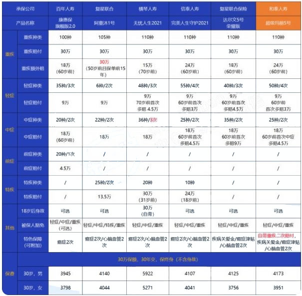 追求重疾保额:阿童沐 1 号和无忧人生 2021 提供了额外的重疾保额。