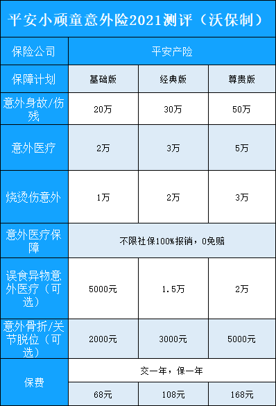 意外险对各年龄段都重要,尤其儿童意外风险高,更需保障。平安小顽童 2021 提供三个保障计划:基础版、经典版、尊贵版,下面详细了解。