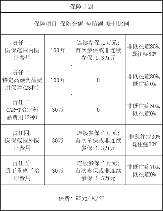 德宏惠民保每年保费统一定价,如下:95元/人/年。