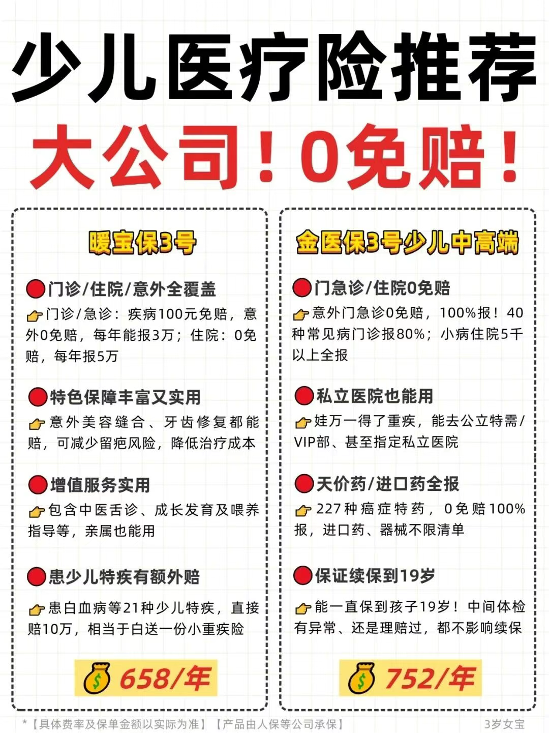 我连夜整理出9月少儿医疗险推荐榜单,全是大公司产品,都是0免赔产品,门急诊/住院都能报~