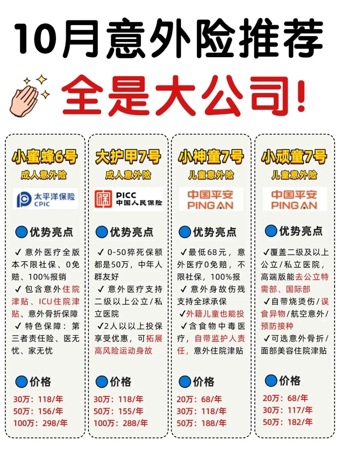 整理了这份10月【大公司意外险精选清单】,都是干货,帮你省时省力,闭眼选都不踩坑!