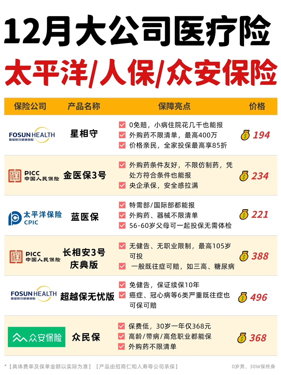 二、免健康告知类:身体有小毛病、高龄、被其他保险拒过的看这里!