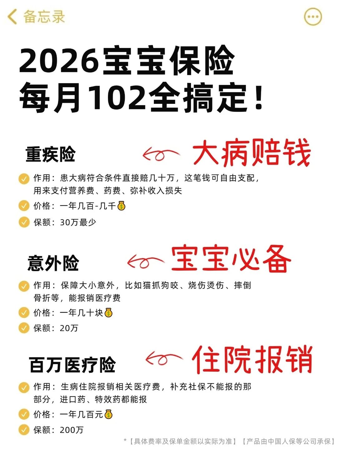 我整理了一份超全2026宝宝保险攻略,从必买险种到避坑清单,再到高性价比方案,全给你们扒清楚了,新手宝妈直接抄作业就行!