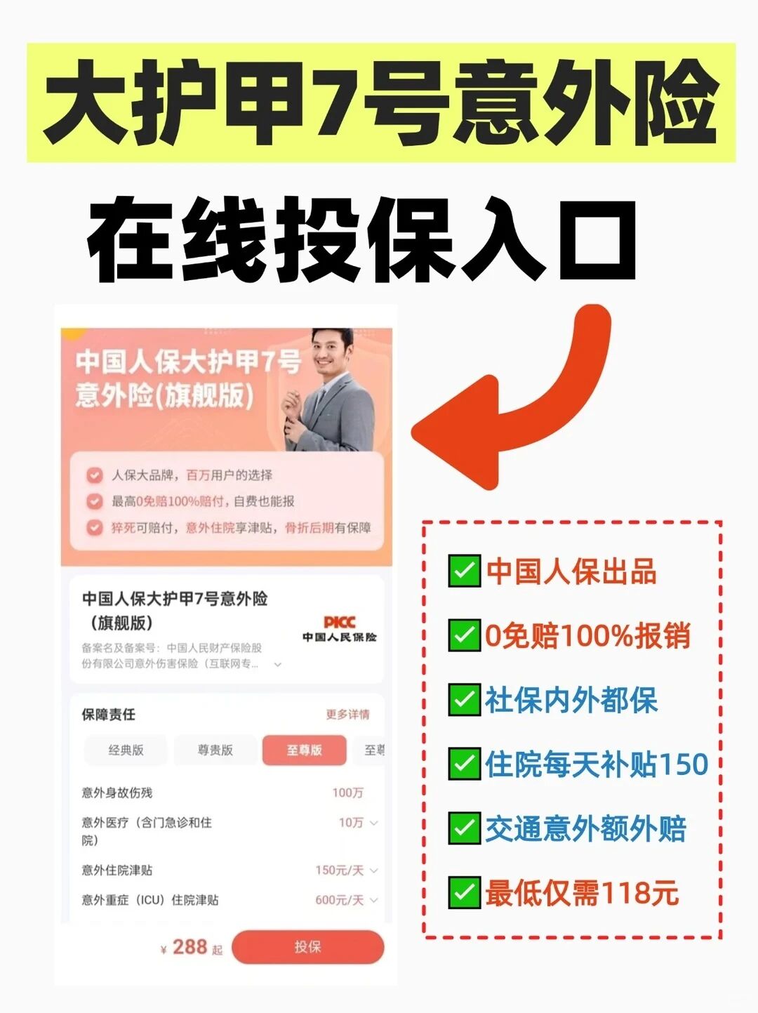 保得特别全:交通意外额外赔,网约车、公交地铁全包括;住院每天补贴150元;连猝死都升级保到100万,安全感拉满