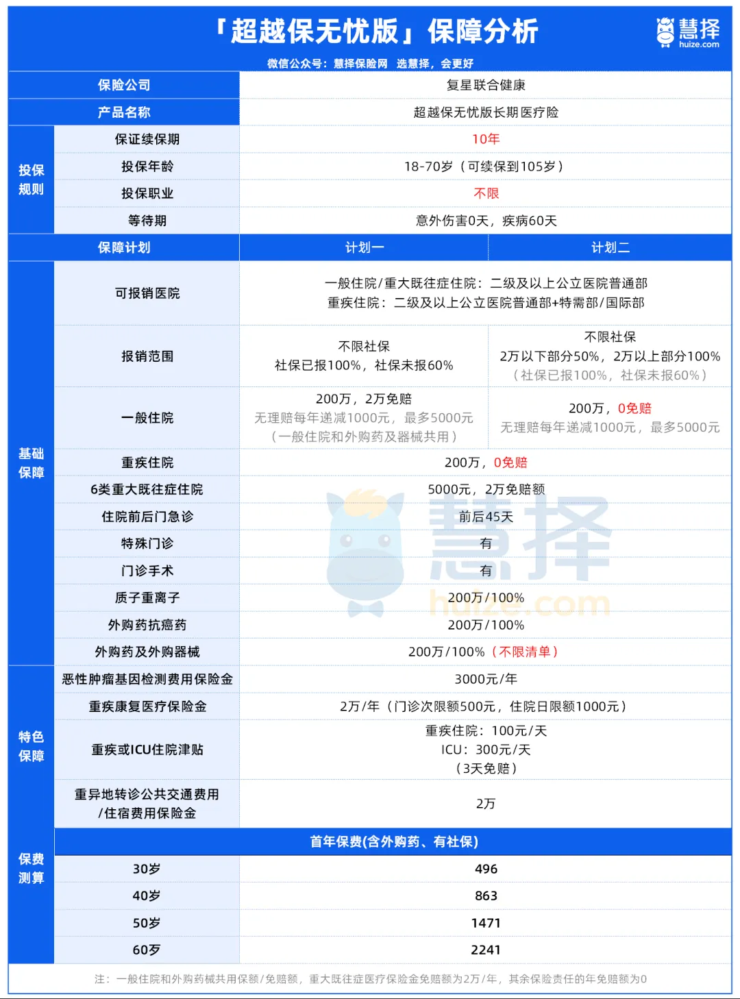 今天给大家推荐一个新的选项——超越保无忧版百万医疗险。