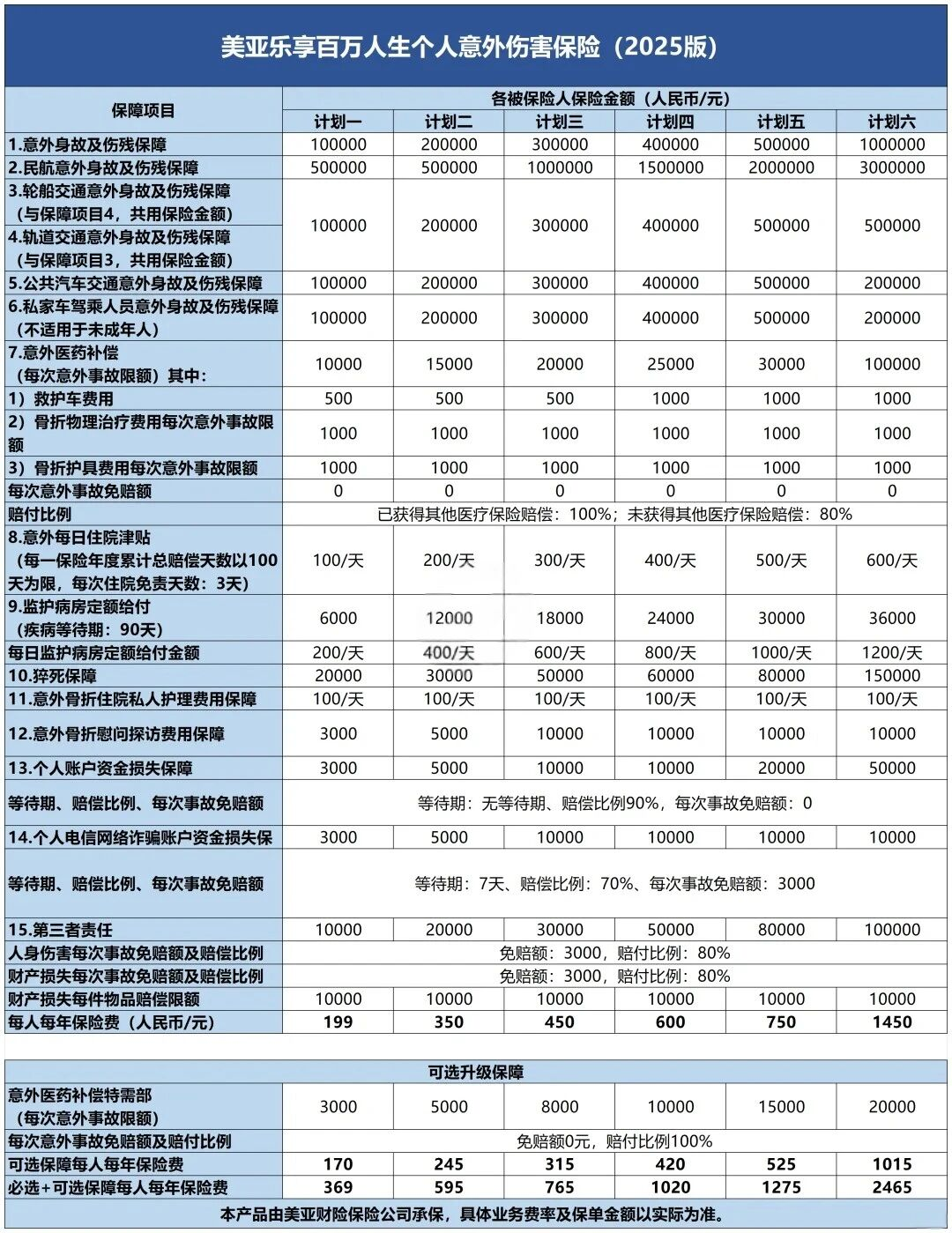 乐享百万人生个人意外险是美亚专项打造的热门意外险产品。