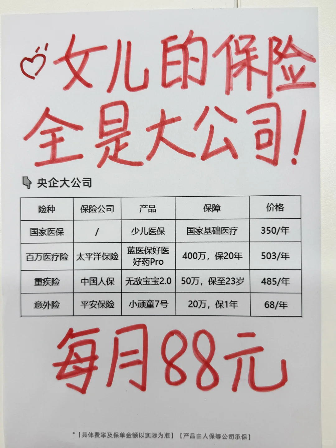 分享一套高性价比宝宝保险方案!大公司!月均100多!非常适合追求安心与实用的宝妈