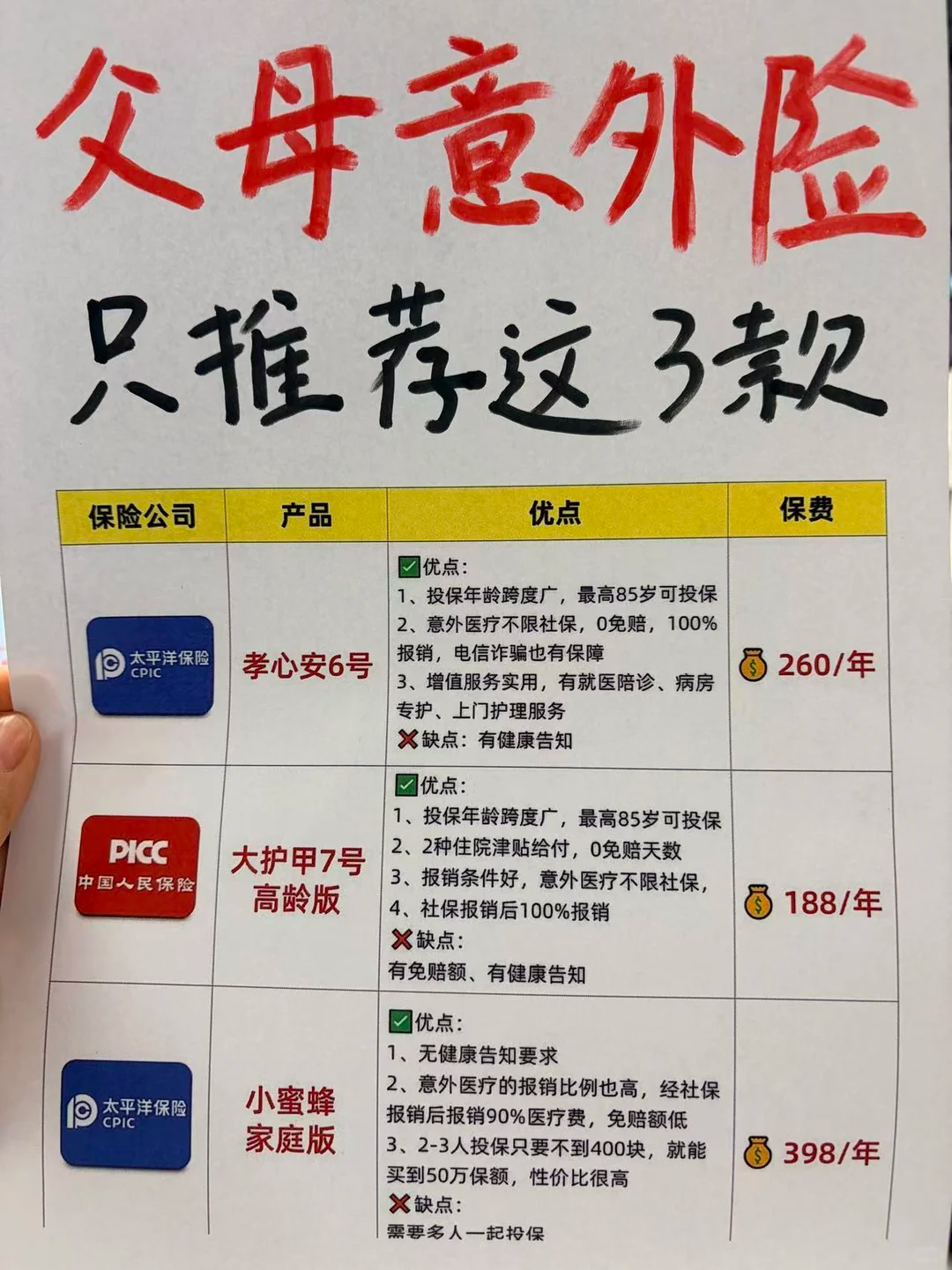 父母意外险哪个好?只推荐2款: