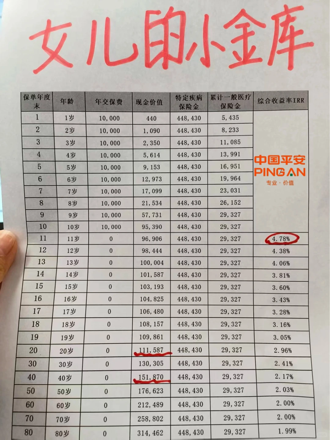 40岁时,达到15.3万,女儿终身有笔钱能用