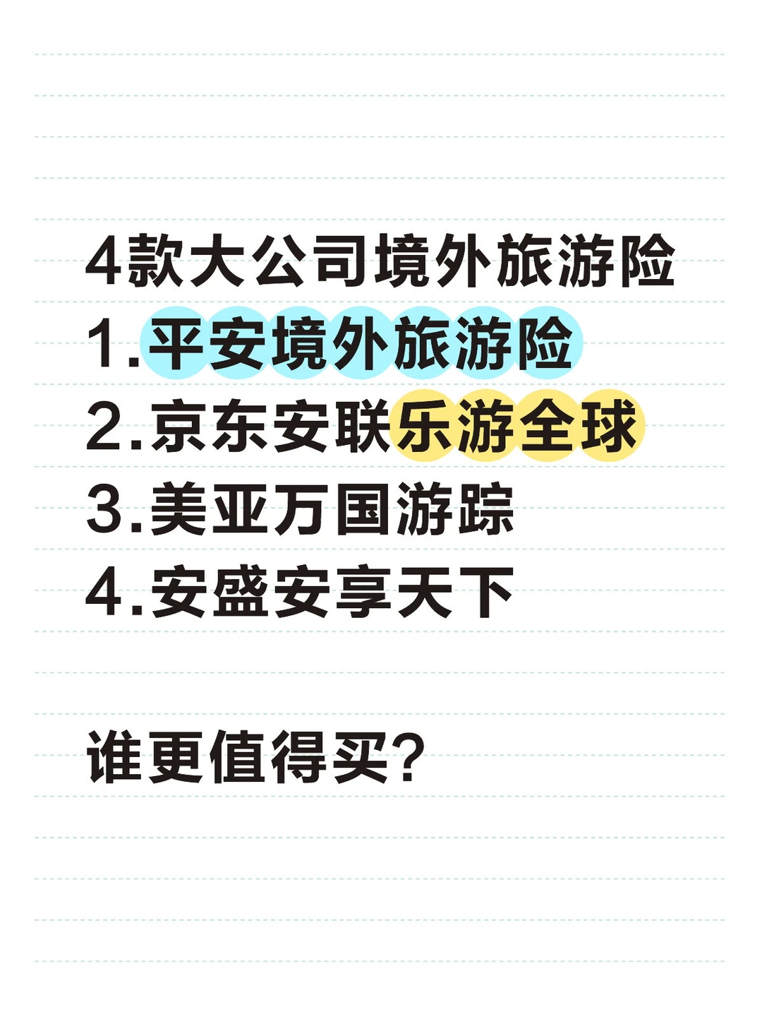每个人的旅行地不同,如果你不确定哪款更适合自己,可以点击>>>分享投保入口、产品对比、条款解读,匹配最优产品~
