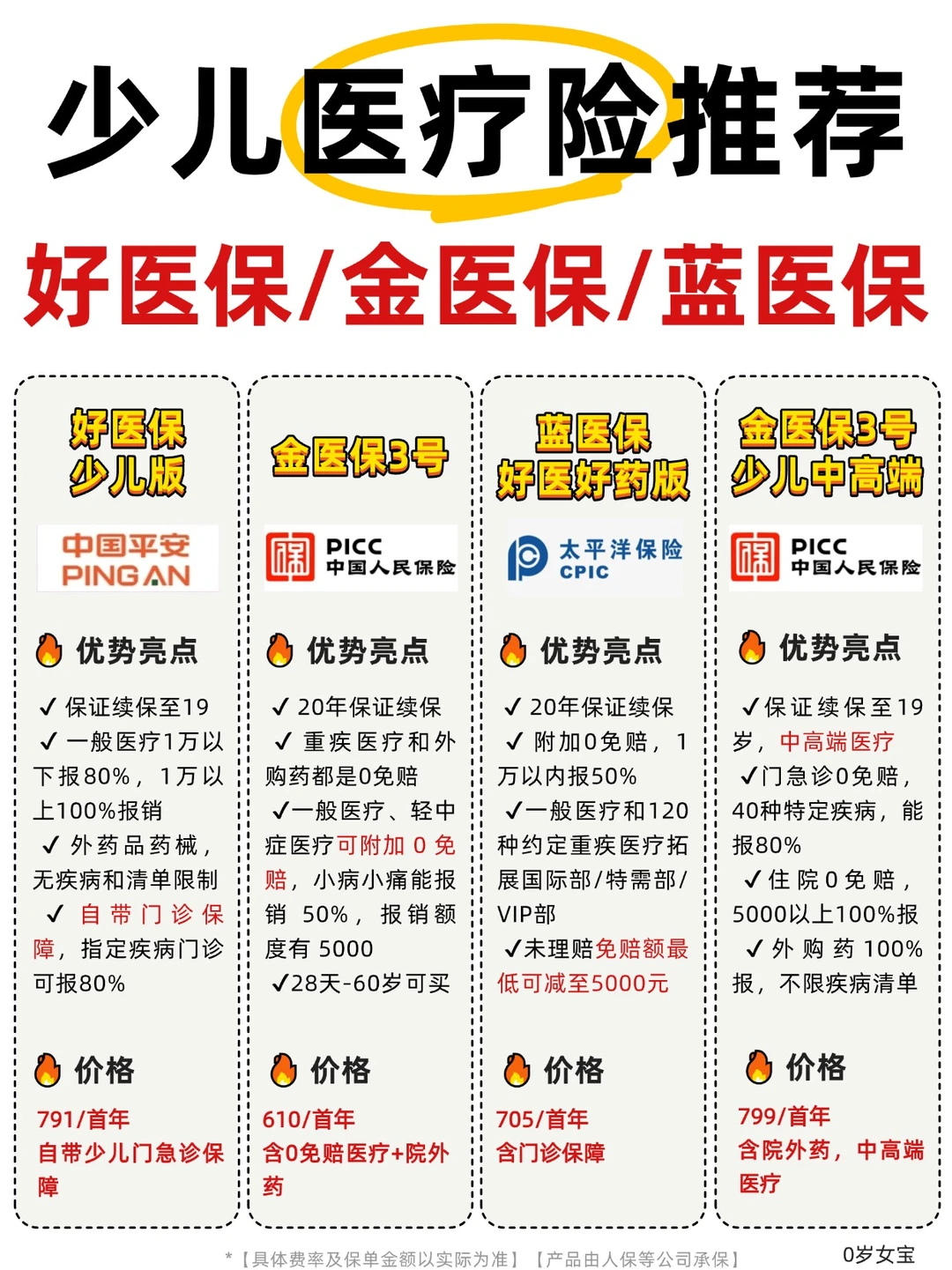 大白直接挑选出4款值得入手的少儿医疗险,都来自中国人保、太平洋保险这类大公司,保障稳、服务也靠谱!