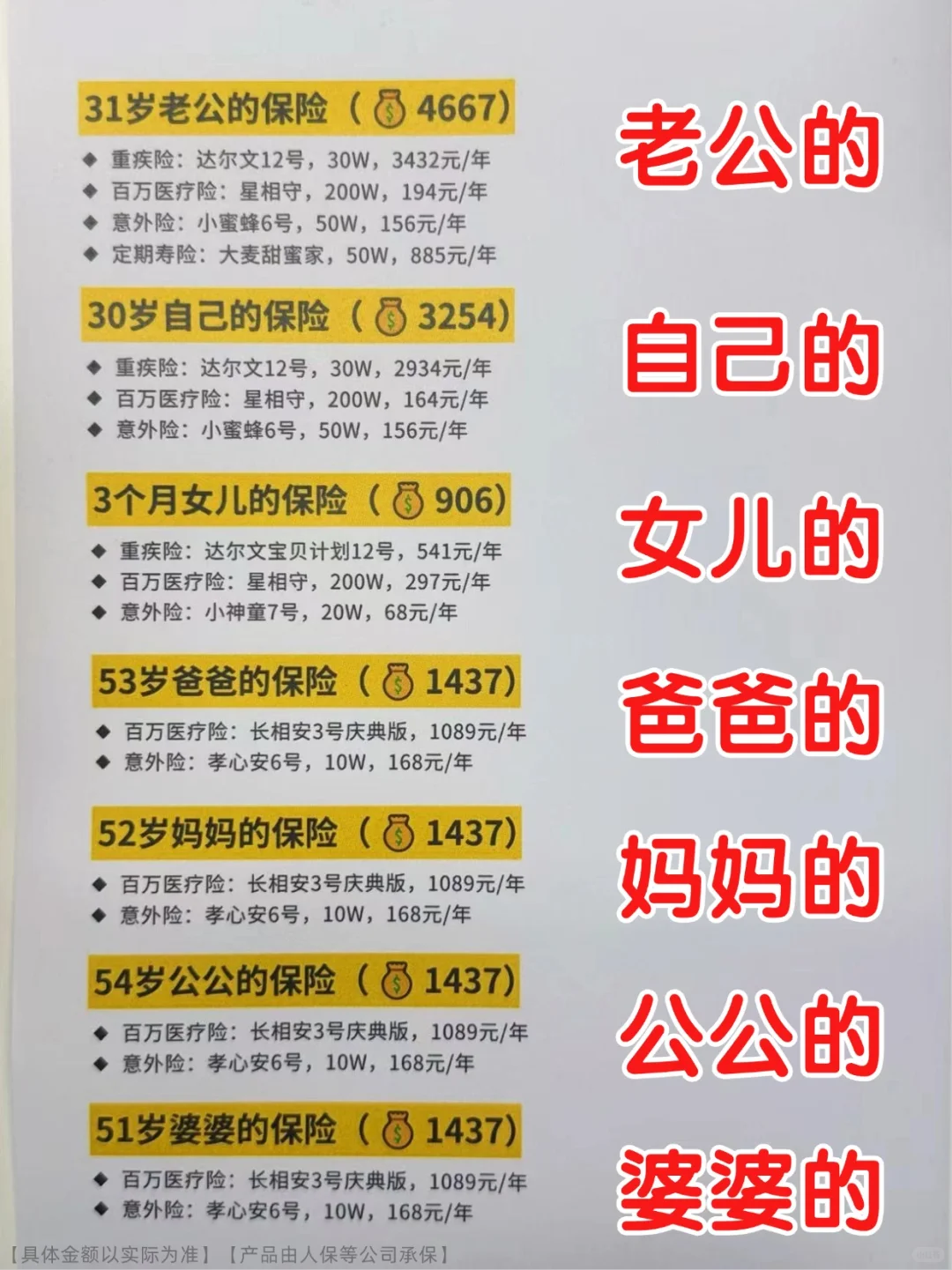 五、父母保险(重疾险太贵,不买,医疗+意外足够)