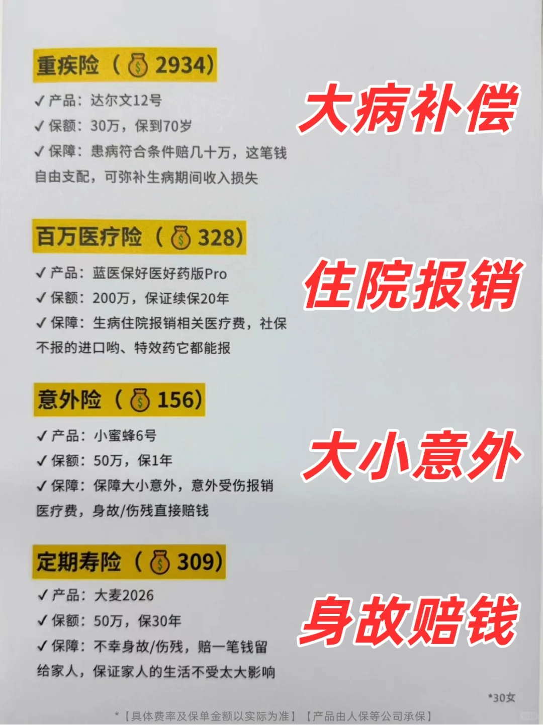 我花了一个下午的时间帮姐妹重新规划了方案,全年保费3000出头,基础保障全包含! 把方案整理出来分享给大家