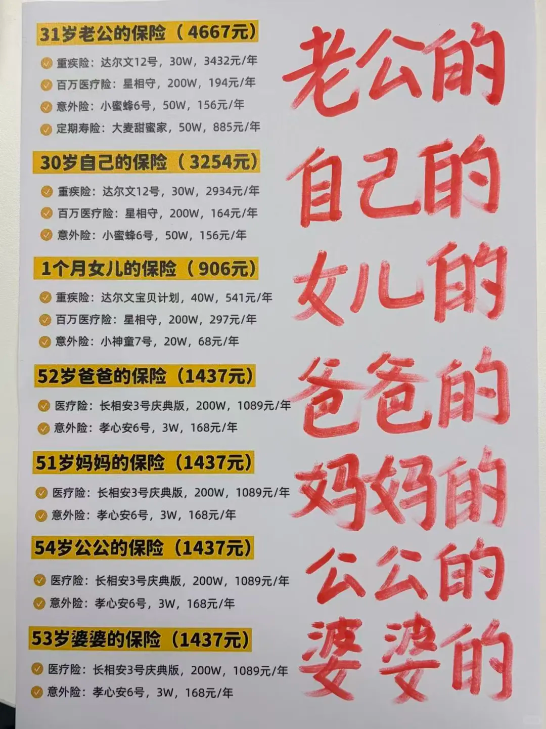 一家7口,从宝宝到老人,医疗、意外、重疾全覆盖,不花一分冤枉钱!